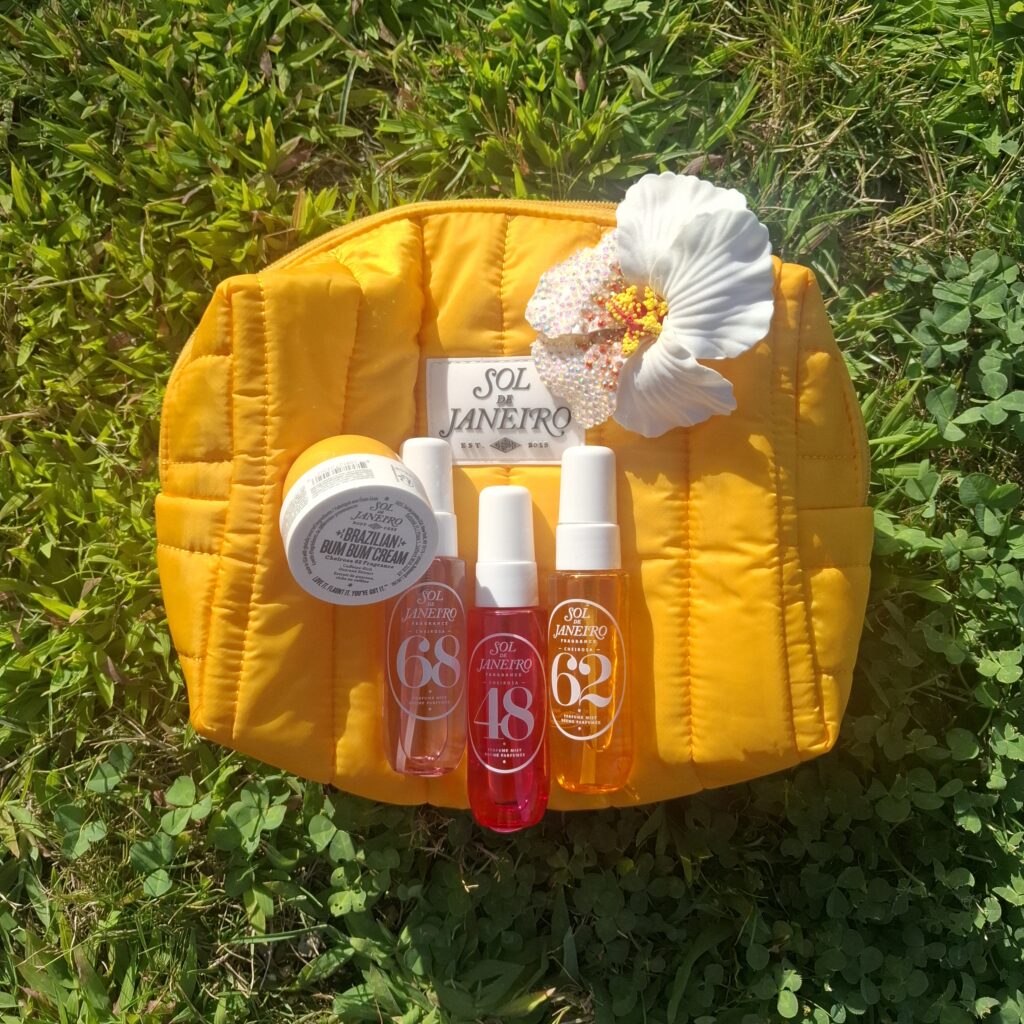 ME HE DADO UN CAPRICHO. Desde hacia semanas pasaba casi todos los días delante de una tienda Douglas. En el escaparate tenían expuesto unos perfume mists – brumas de perfume- deSol de Janeiro. Al final caí en las redes del consumismo y compré un pack de 3 brumas y la crema Brazilian Bum Bum en tamaño viaje + un neceser amarillo. Las brumas y sus aromas: